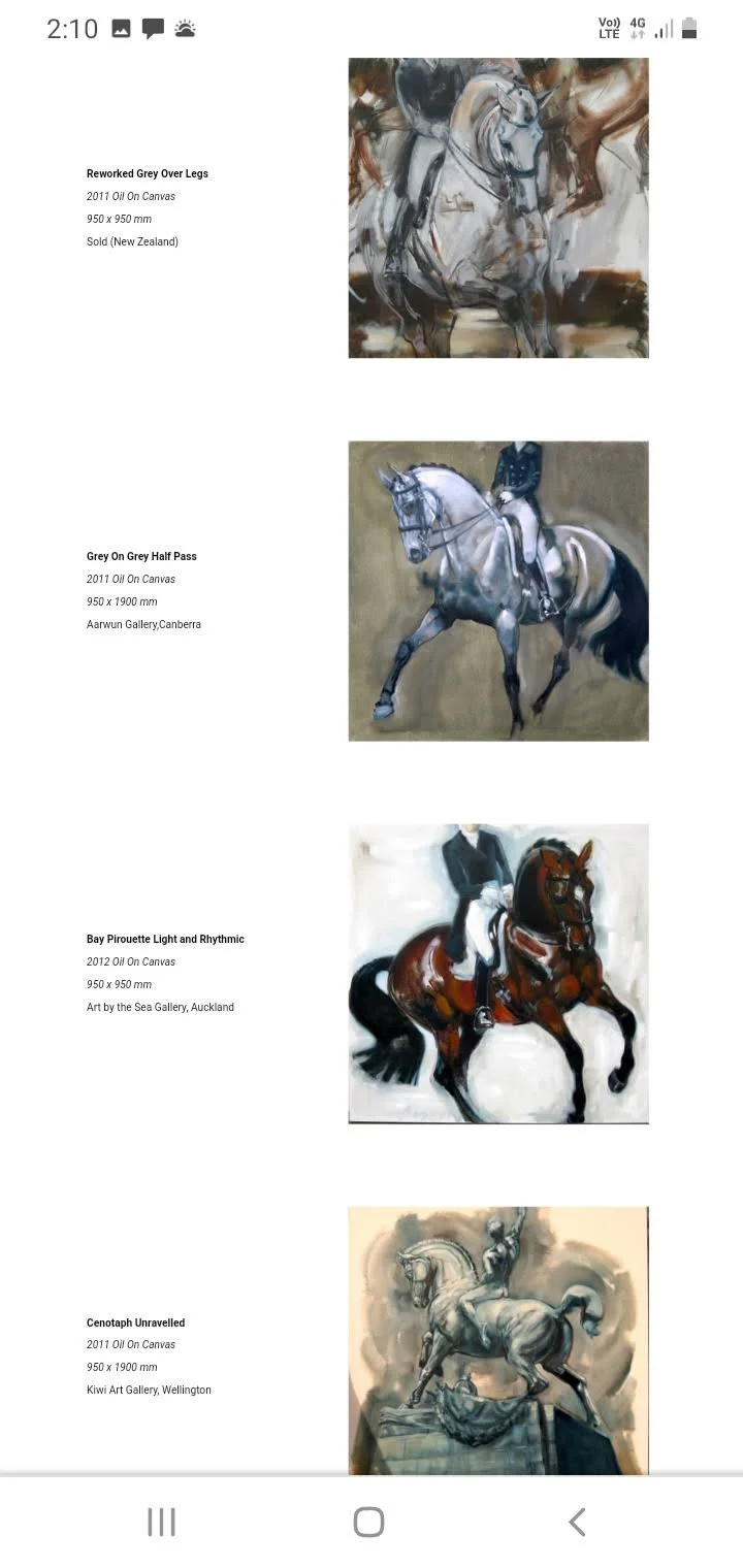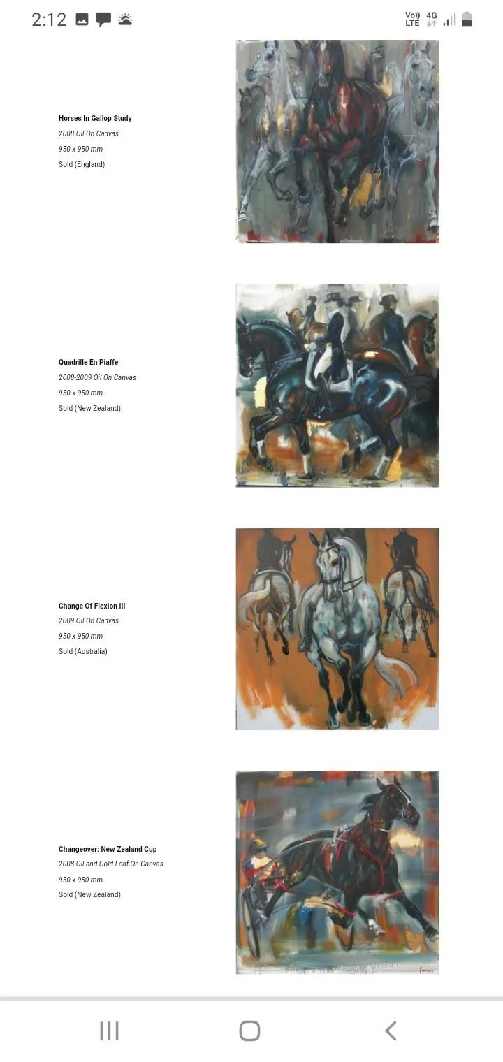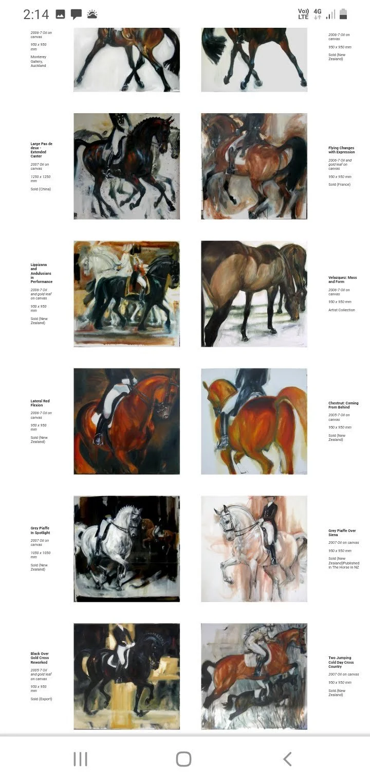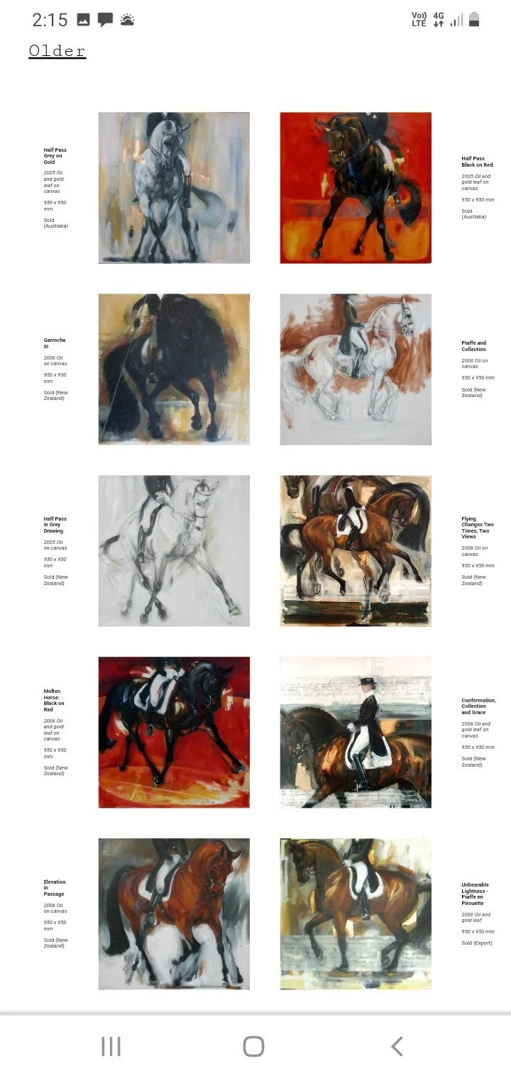 Rising Matariki in dawn.. Moment of Suspension 3 Moments in Collectiom SOLD Au Bay Extended Trot. SOLD NZ. New York Soft Flexion SOLD NZ. Soft Flexion II AbFab. Bay en Piaffe Great Eventer Milennial Monument. Black Canter Pirouette Black Transition Passage Bay Forward Canter .Balanced and Uphill Bay Canter Pirouette Bay Landing Living Room I Drawing. Change of Flexion Right to Left Sold out Horse Ride on a Clear Day. Archived Sold Works